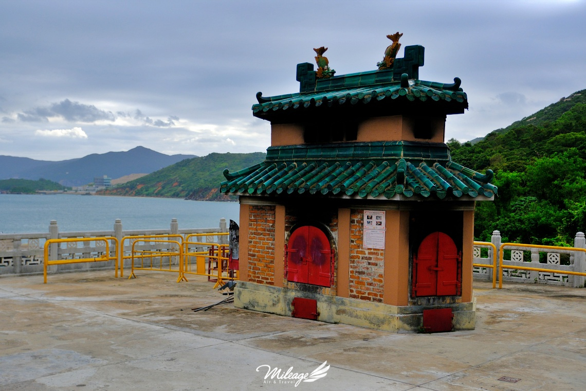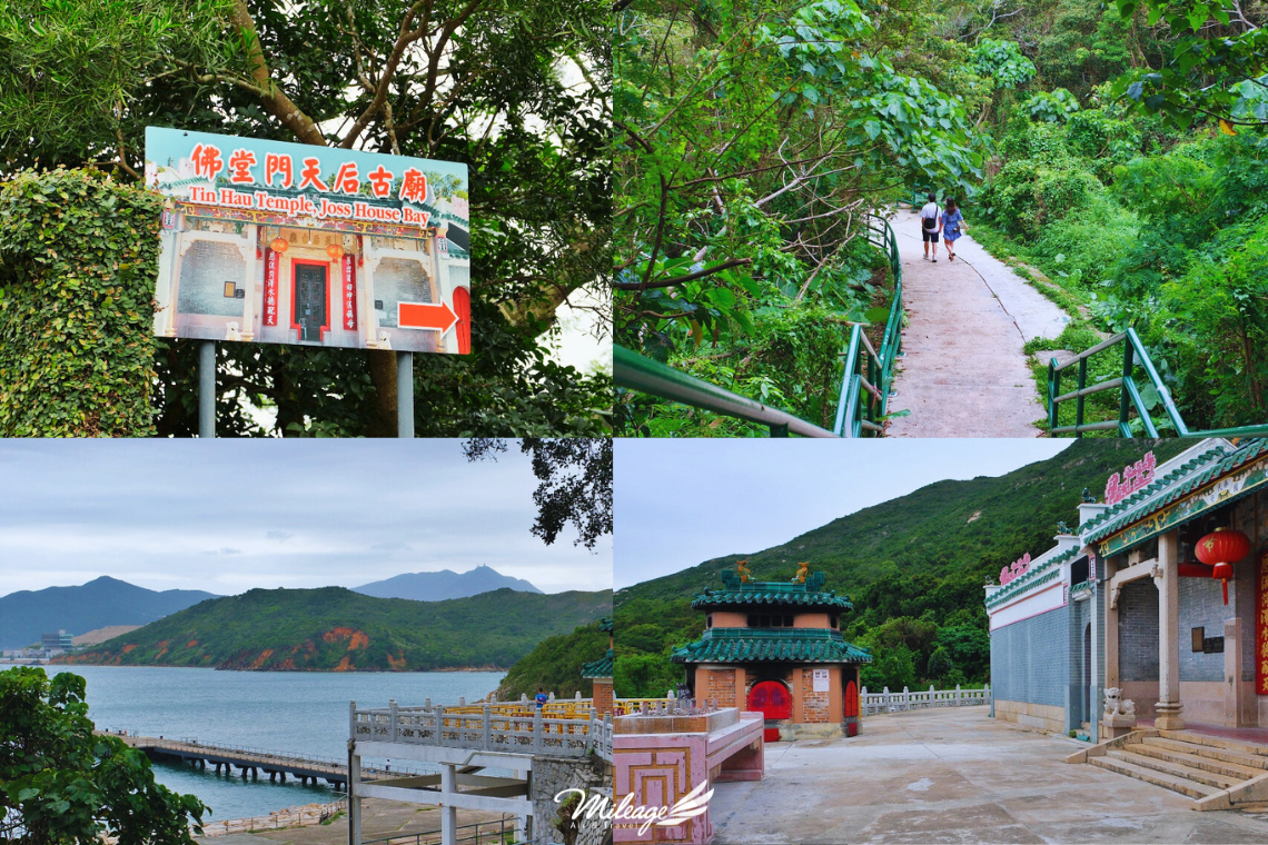 วัดเจ้าแม่ทับทิมแห่งนี้ เป็นที่รู้จักกันในชื่อวัด Tin Hau Joss House Bay นอกจากจะเป็นวัดจ้าแม่ทับทิมที่เก่าแก่ที่สุดของฮ่องกงแล้ว ยังมีจุดเด่นที่ทำให้หลาย ๆ คนมาแล้วอยากจะกลับมาอีกคือ เป็นวัดที่ตั้งโดดเด่นอยู่ริมอ่าว Clear Water Bay ที่เงียบสงบ มีเขาสูงตระหง่านอยู่ด้านหลัง ด้านหน้าวัดคือโค้งอ่าวที่สลับกับภูเขาและชายหาดต่อเนื่องกันอยู่ทั้งสองฝั่ง มองเห็นหมู่บ้านชาวประมงและหาดทรายสลับซับซ้อนกันอยู่ไกลออกไป การมาสักการะเจ้าแม่ทับทิมจะต้องเดินจากจุดจอดรถด้านบนลงมาถึงอ่าว เป็นทางเดินสำเร็จรูปที่ค่อนข้างชัน ใช้เวลาเดินประมาณ 10 นาที เมื่อเดินอ้อมไปยังด้านหน้าวัด จะพบกับลานกว้างหน้าวิหารที่มีลมทะเลพัดเข้ามาอยู่เป็นระยะ