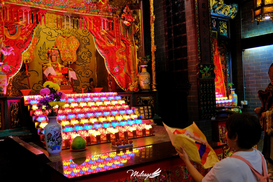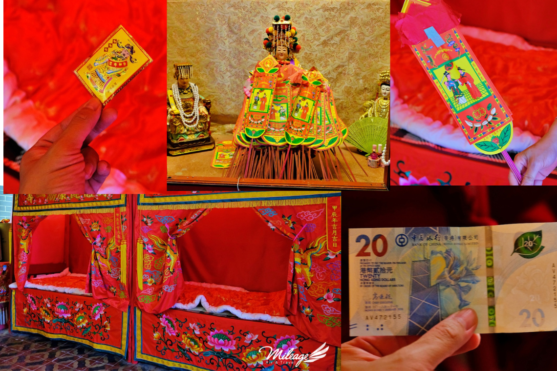 ในห้องโถงที่อยู่ติดกับวิหารหลัก จะเป็นห้องบรรทมเจ้าแม่ทับทิม ทางวัดจะปิดทางเข้าเอาไว้ หากอยากเข้าไปขอพรขอโชคเราจะต้องเสียค่าเข้าไปขอโชคจากเจ้าแม่ โดยทำบุญกับทางวัด20 HKD ต่อการขอโชค 1 ครั้ง