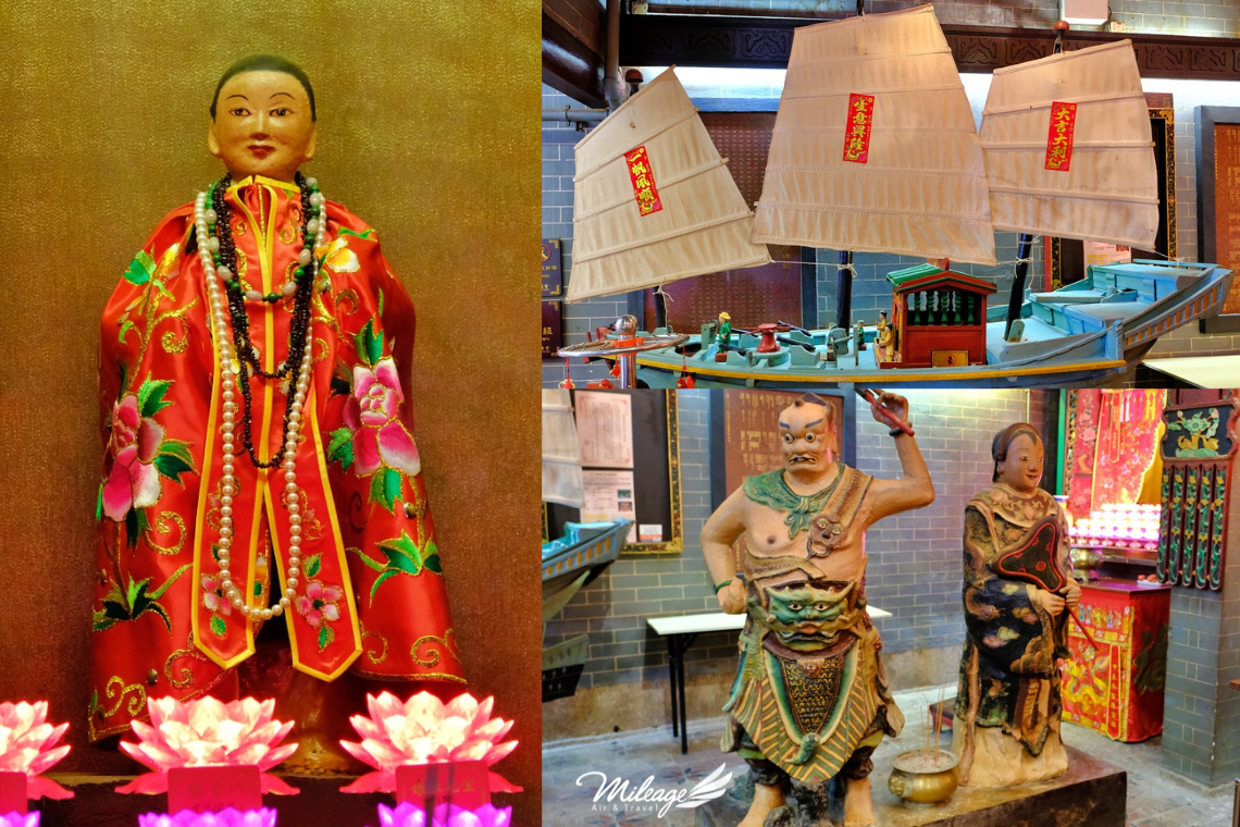 โดยปกติภายในวัดของเทพเจ้าผู้ปกป้องคุ้มครองทางน้ำมักจะมีเรือจำลองตั้งอยู่ด้วย ซึ่งเป็นสัญลักษณ์ของการปกป้องคุ้มครองภัยทางน้ำ และการอวยพรชาวเรือจากเทพเจ้าภายในวัด สำหรับวัดเจ้าแม่ทินหัว Joss House Bay แห่งนี้ นอกจากภาพเรือแกะสลักปิดทอมก็ยังมีเรือจำลองงดงามอีกสองลำตั้งอยู่ทางด้านซ้ายและขวาของแท่นบูชา