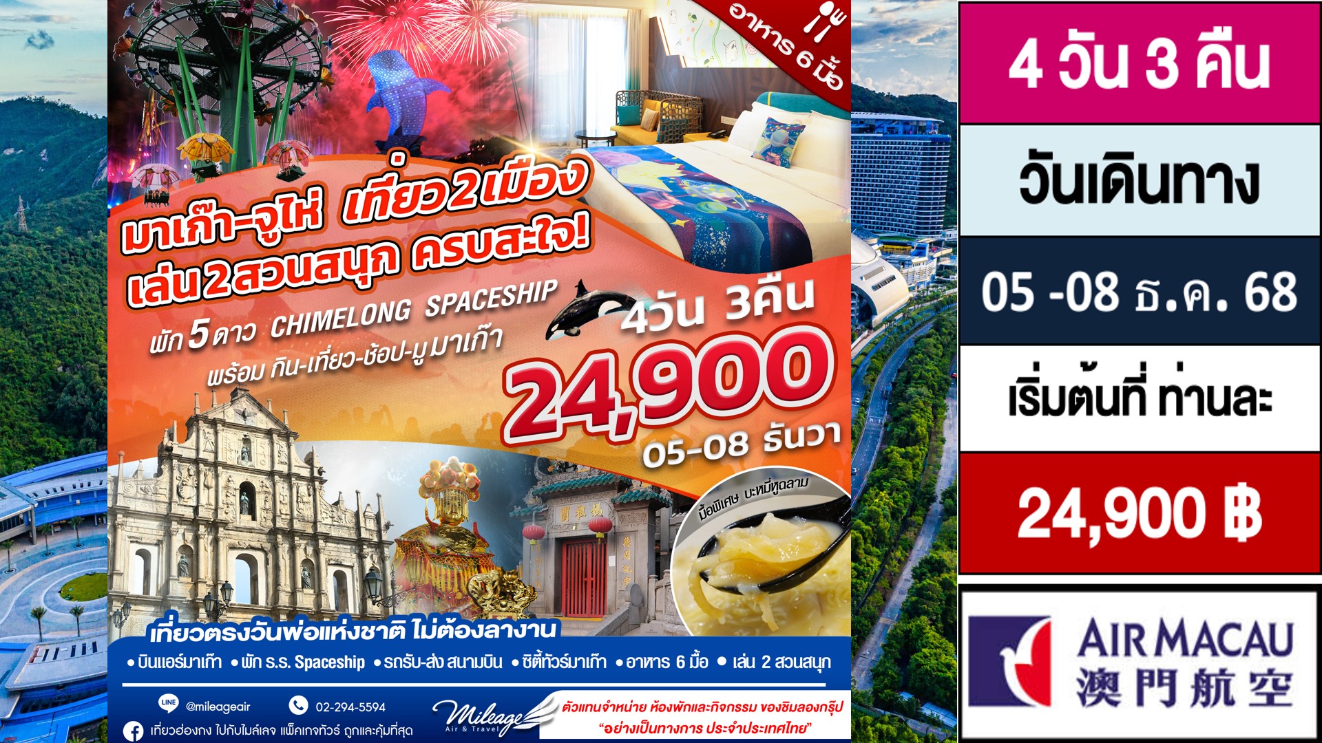 มาเก๊า-จูไห่ เที่ยว 2 เมือง กับ 2 สวนสนุก Spaceship และ Ocean Kingdom 5-8 ธ.ค.