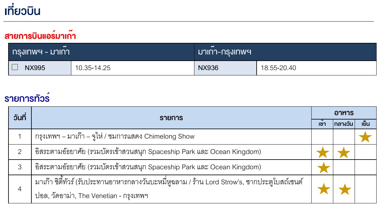 | วันแรก กรุงเทพ-มาเก๊า (อิสระ) |