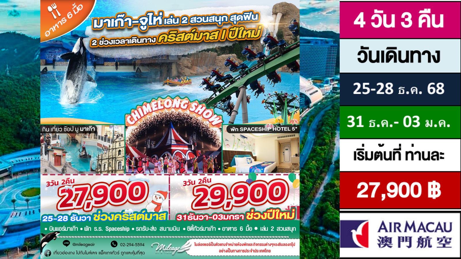 เที่ยวฉลองคริสมาสต์ ปีใหม่ มาเก๊า - จูไห่ เที่ยวสองเมือง กับ 2 สวนสนุก