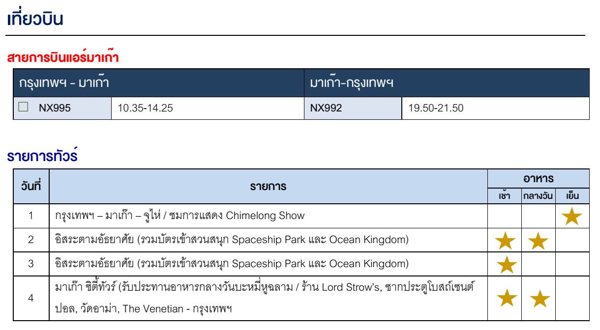 | วันแรก กรุงเทพ-มาเก๊า (อิสระ) |