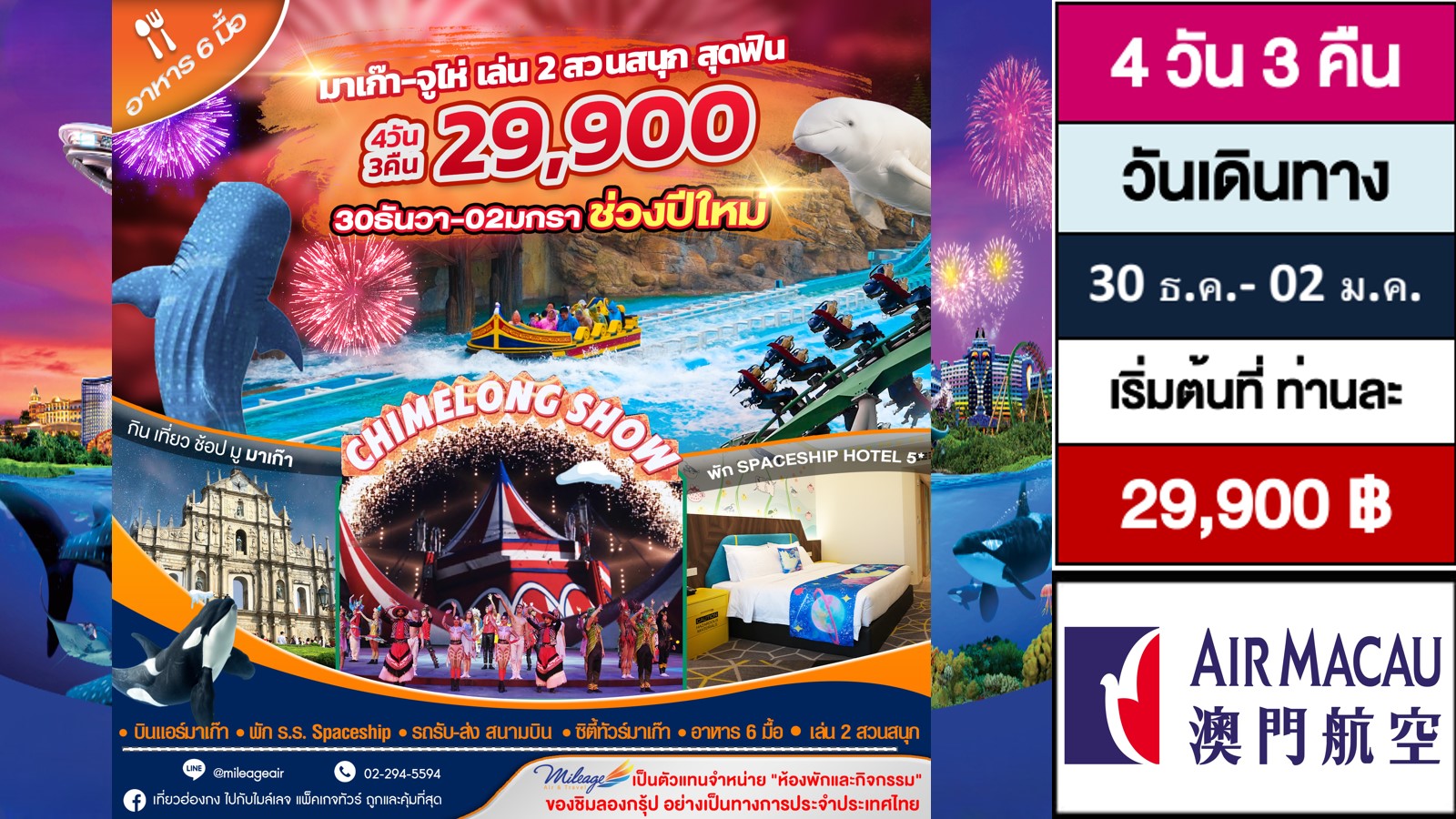 ฉลองปีใหม่ 30 ธ.ค.-02 ม.ค. 69 มาเก๊า  จูไห่ เที่ยวสองเมือง กับ 2 สวนสนุก