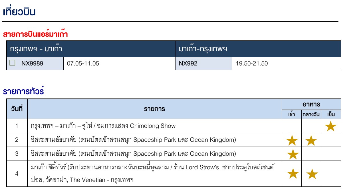 (ถ้าเป็นเด็กกรุณาระบุวัน เดือนและปีค.ศ.เกิด) พร้อมระบุหัวข้อการจอง มาเก๊า-จูไห่ ปีใหม่ 30 ธ.ค.-02 ม.ค.