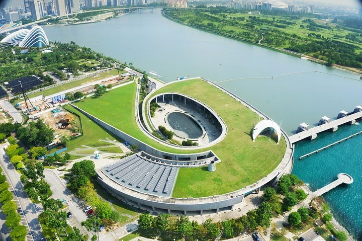 เขื่อนมารีน่า บาร์ราจ (Marina Barrage) ตั้งอยู่บริเวณช่องแคบมารีน่าซึ่งเป็นจุดบรรจบกันของเส้นทางน้ำถึง 5 สาย จึงเป็นอ่างกักเก็บน้ำจืดที่ใหญ่ที่สุดในสิงคโปร์ และยังมีหน้าที่สำคัญในการบรรเทาปัญหาน้ำท่วมอีกด้วย นอกจากนี้ มารีน่า บาร์ราจยังเป็นสถานที่อเนกประสงค์ที่มีทั้งสวนโซลาร์ พาร์ค (Solar Park) ที่มีแผงโซลาร์เซลล์รับพลังงานแสงอาทิตย์กว่า 400 แผง พิพิธภัณฑ์ให้ความรู้การจัดการน้ำ ศูนย์กิจกรรมทางน้ำ เช่น การพายเรือคายัค หรือการแข่งเรือมังกร และสวนลอยฟ้าที่เป็นสนามหญ้าขนาดใหญ่อยู่บนชั้นลอยที่ทุกคนสามารถมานั่งเล่นพักผ่อนพร้อมชมวิวสถานที่สำคัญรอบอ่าวมารีน่าเบย์ ไม่ว่าจะเป็น Gardens By the Bay, Marina Bay Sands, และ Singapore Flyer